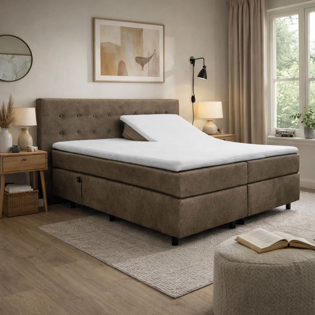 Bij ons draait het niet om één vast model, maar om jouw ideale boxspring. In de showroom zie je verschillende voorbeelden van elektrisch verstelbare uitvoeringen, allemaal van Nederlands fabricaat. Zo krijg je een goed beeld van wat wij kunnen maken. Aan de hand van die voorbeelden stellen we samen een boxspring samen die helemaal bij jou past: van het type onderbak tot het gewenste ligcomfort. Dankzij de elektrische verstelbaarheid bepaal je eenvoudig je ideale houding om te lezen, ontspannen of slapen.