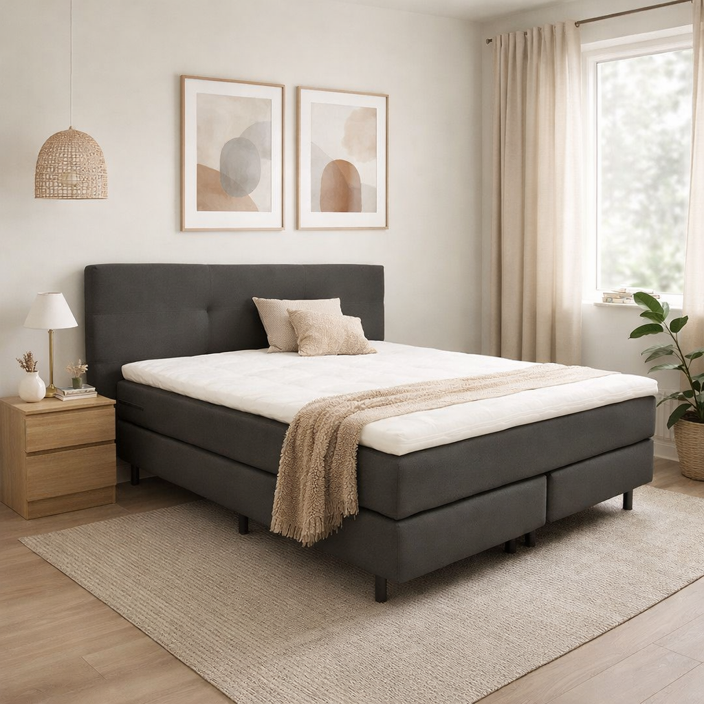 Ontdek het geheim van een goede nachtrust met de Boxspring Oskar, uitgerust met 20cm pocketgeveerde onderbakken. Deze onderbakken bieden optimale ondersteuning aan je matras tijdens het slapen.