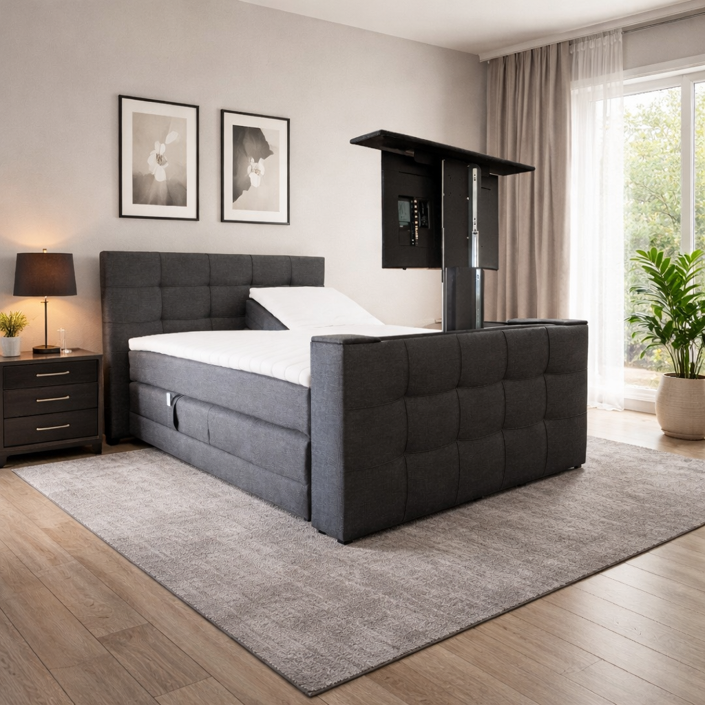 Ervaar een heerlijke slaapcomfort met de Boxspring Robert, voorzien van 20cm elektrische pocketgeveerde onderbakken. Deze Electrische onderbakken bieden een prachtige ondersteuning voor je lichaam, waardoor je spieren kunnen ontspannen en je een diepe nachtrust kunt ervaren. De elektrische functie maakt het mogelijk om de perfecte slaappositie te vinden, of je nu een boek wilt lezen, tv wilt kijken of gewoon wilt ontspannen na een lange dag.